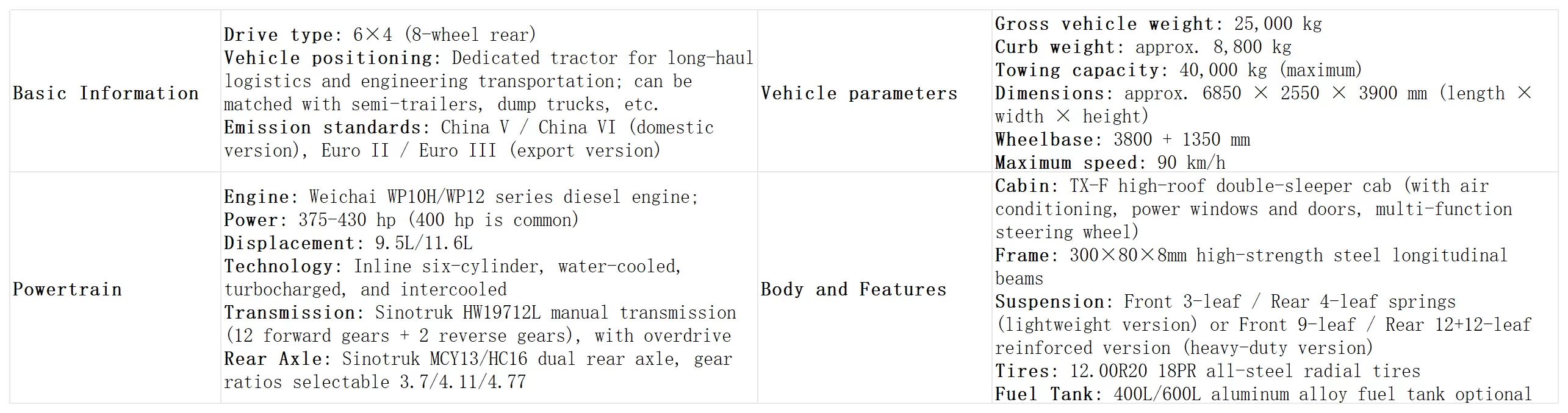 ຕົວກໍານົດການຫຼັກຂອງລົດໄຖນາ Sinotruk Howo TX 6 × 4 (ຮຸ່ນ chassis) ນີ້ແມ່ນດັ່ງຕໍ່ໄປນີ້: